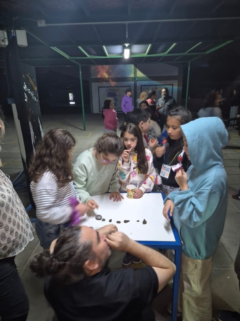 Posteriormente invitamos a los alumnos, profesores y apoderados que asistieron, a observar algunas muestras de meteoritos que tenemos en nuestro poder, donde pudieron por primera vez, tener un pedacito de estas rocas espaciales en sus manos.